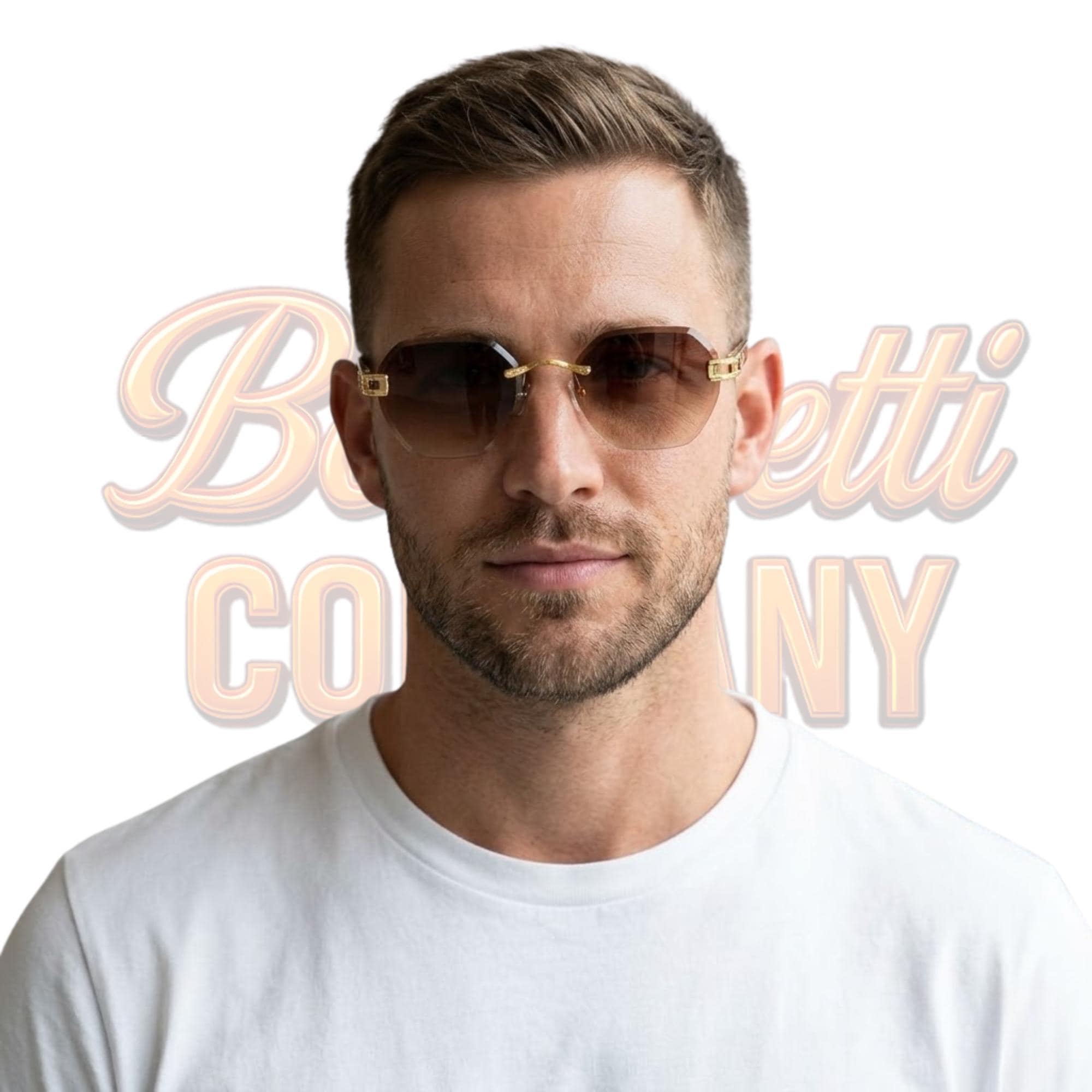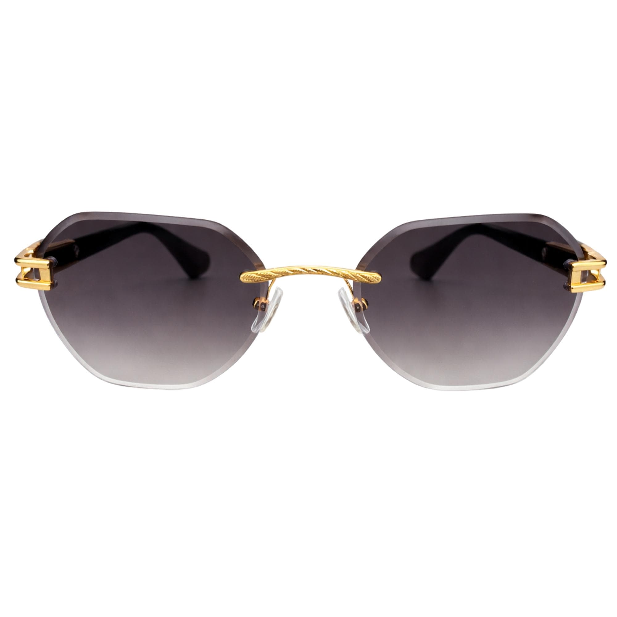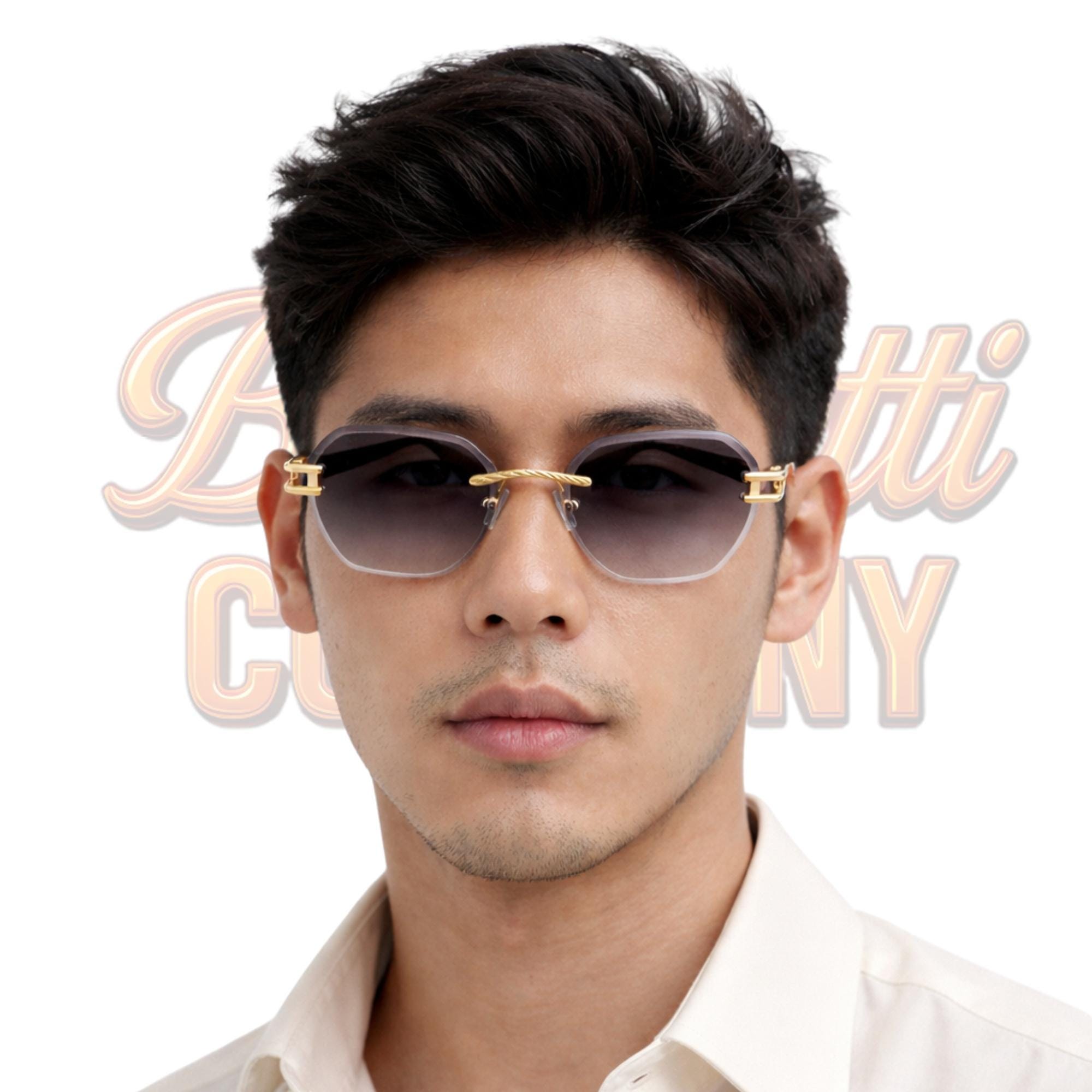 Unique hexagonal rimless silhouette with luxe gold detailing and tortoise temples. Lightweight, durable, and made to elevate both men’s and women’s style.
